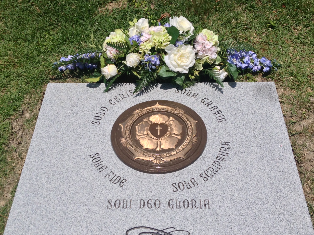 …things that we have heard and known, that our fathers have told us. We will not hide them from their children, but tell to the coming generation the glorious deeds of the LORD, and his might, and the wonders that he has done. He established a testimony in Jacob and appointed a law in Israel, which he commanded our fathers to teach to their children, that the next generation might know them, the children yet unborn, and arise and tell them to their children, so that they should set their hope in God and not forget the works of God, but keep his commandments… (Psalm 78:3-7)As Lisa considered what kind of memorial would be placed here for Michael, she thought of these very things, looking for something that would point to the greater reality of Michael’s faith. In God’s providence, through an issue of Tabletalk, Lisa discovered the crest known as the “Luther Rose.” Given its specific symbolism of the Gospel message, it seemed a perfect memorial.